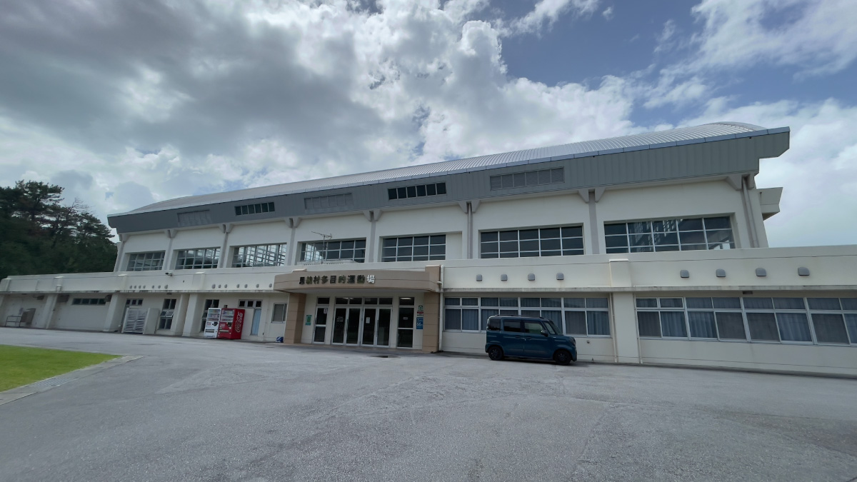 赤間多目的運動場は平成25年2月1日に落成式を終え、近年多様化するスポーツ及び健康増進に対するニーズに応えるため雨天時や真夏の日差しを避けてスポーツや高齢者のゲートボールなど一年中通スポーツを通して健康増進や観光の振興、地域の活性化を目的としまた恩納村のほぼ中央であることと、沖縄自動車道や国道58号線等からの高いアクセス条件を有していることから大規模災害時の広域避難場所としても活用することを目的として建てられました。室内土足禁止、飲食禁止。